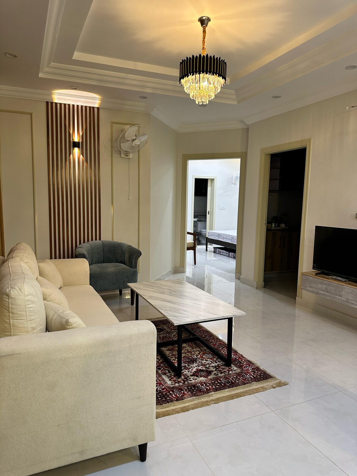 Enjoy a luxurious stay in the heart of Citi Housing Jhelum. This modern 1BR apartment features a king bed, stylish living room, LCD TV, sofa, and a beautiful balcony. The kitchen comes equipped with a fridge and microwave for a comfortable stay. Perfect for couples, solo guests, or business travelers looking for comfort, privacy, and a premium experience.