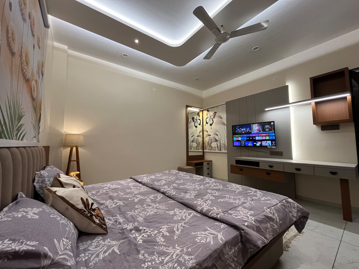Відчуйте себе в розкішній, повністю обладнаній квартирі з однією спальнею та вітальнею, розташованій у престижному районі міста, що пропонує сучасні зручності, стильні інтер’єри, ідеально підходить для пар, сімей або ділових поїздок. Ми маємо високоякісне обладнання для вашого використання, що робить ваше перебування більш комфортним. Щоденні необхідні речі знаходяться всього за крок, продуктовий магазин знаходиться поруч, а популярні додатки для доставки, такі як Blinkit, Zomato та інші, також легко доступні. Помешкання також розташоване поруч з головною дорогою для зручності сполучення.