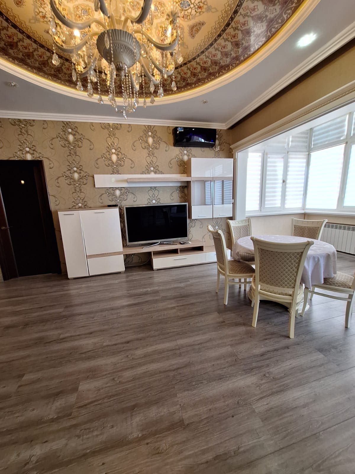 Насолоджуйтеся стильними враженнями в центрі міста з панорамним видом на море. Розкішні апартаменти в стилі сучасного мінімалізму (чорні апартаменти) на першій лінії в центрі міста на центральній набережній ,в класичному будинку галереї Актау, побудованому в 90-х роках, є ліфт. Поруч є магазини, ресторани, кафе, торгові центри,набережна тощо. У квартирі є все необхідне для комфортного перебування. Унікальність-їдальня та спальня з видом на море, ліжко розміру «king-size» Депозит у розмірі 10 000 тенге