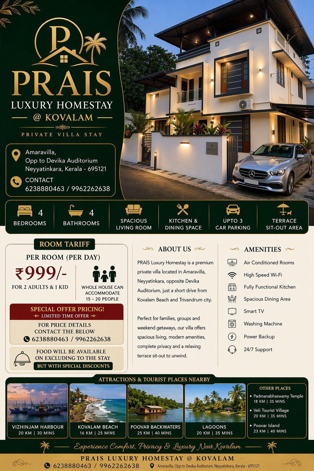PRAIS: приватна вілла за 999 ₹ поблизу Ковалама
