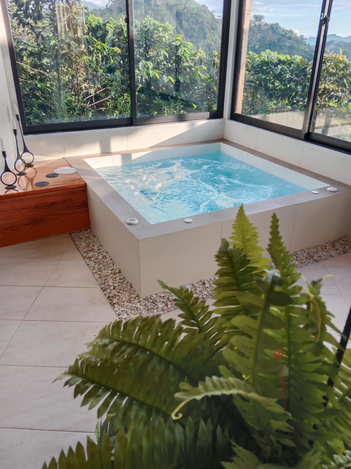 Descubre Villa Luna, un refugio de lujo en el corazón del paisaje cultural cafetero. Rodeado de cafetales y naturaleza, este espacio privado ofrece cama king size, ducha caliente con vistas a los paisajes cafeteros, jacuzzi climatizado de piedra natural, cocina y una malla catamarán para disfrutar de las vistas. Perfecto para desconectarte, relajarte y vivir momentos inolvidables. Incluye desayuno gourmet para dos personas. ¡Haz de tu estadía una experiencia única en el eje cafetero!