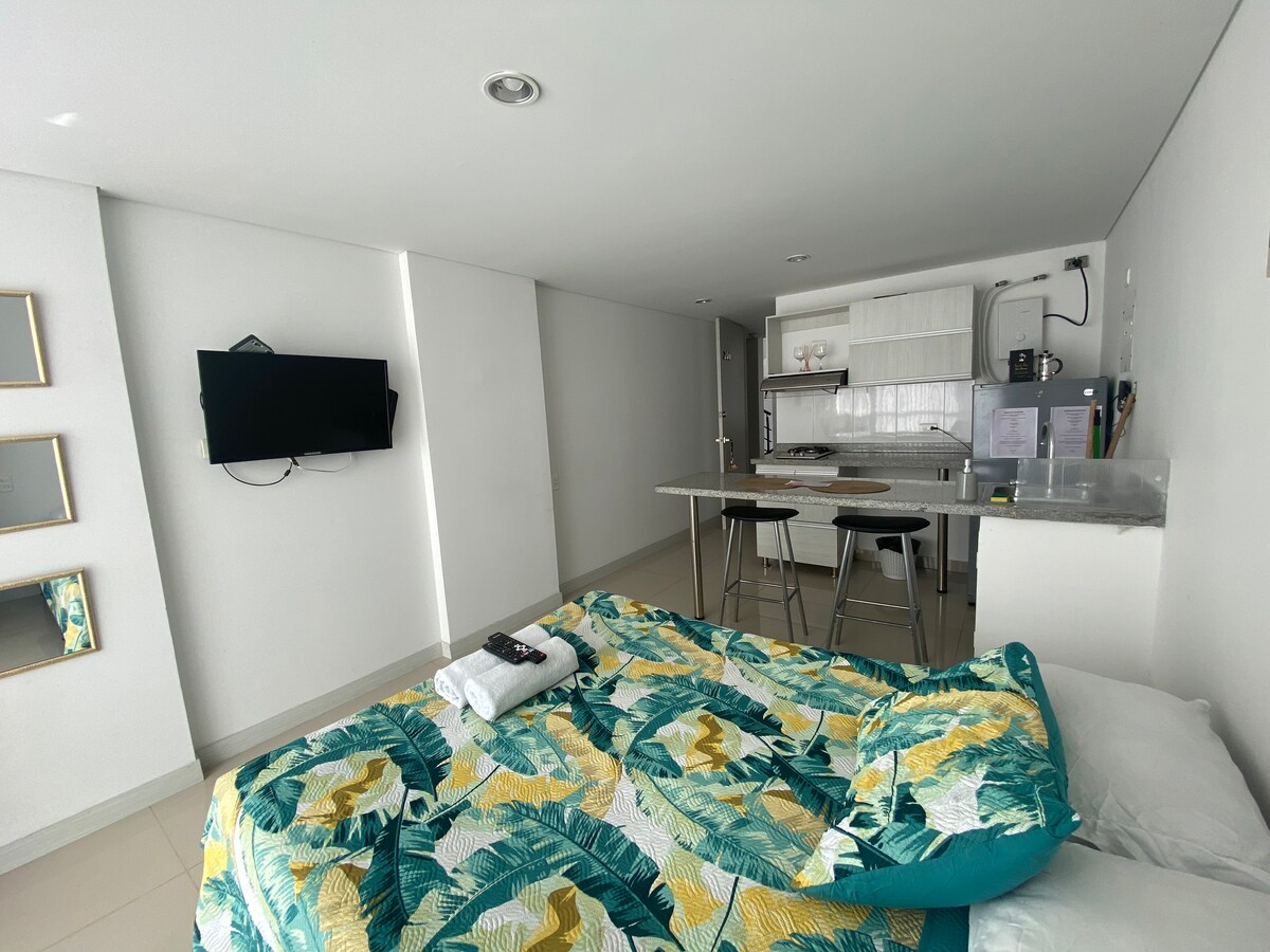 Це добре обладнана мебльована квартира-студія з послугами та їхніми елементами, стратегічно розташована в Манізалесі, перед Автономним університетом Манізалеса (Університетський район) і лише за 5 хвилин від центру Манізалеса, з легким доступом до транспорту та природним освітленням, тиха, комфортна та з гарним видом на природний ландшафт, де можна побачити птахів. Це помешкання, створене для поєднання комфорту, стилю та приватності в одному просторі.