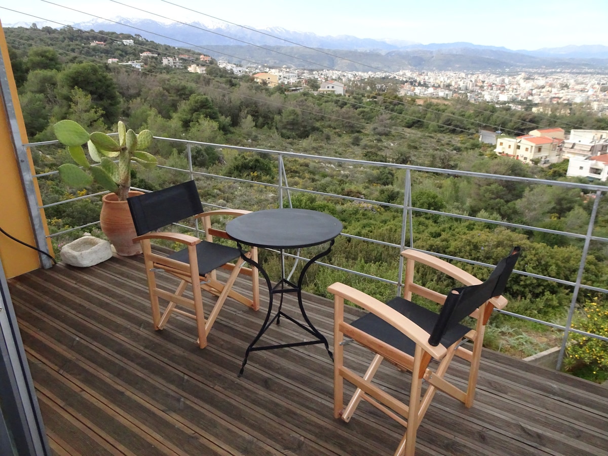 Відпочиньте й розслабтеся в цьому затишному стильному помешканні, що знаходиться всього в 5 минутах їзди від 4 пляжів і з легким доступом до Західного Криту. Ця окрема студія в оливковій і цитрусовій рощі ідеально підходить для насолоди природою в комфортній обстановці всього в 10 минутах їзди від старого порту Ханія. Знизу відкривається приголомшливий вид на Білі гори та долину Ханія.