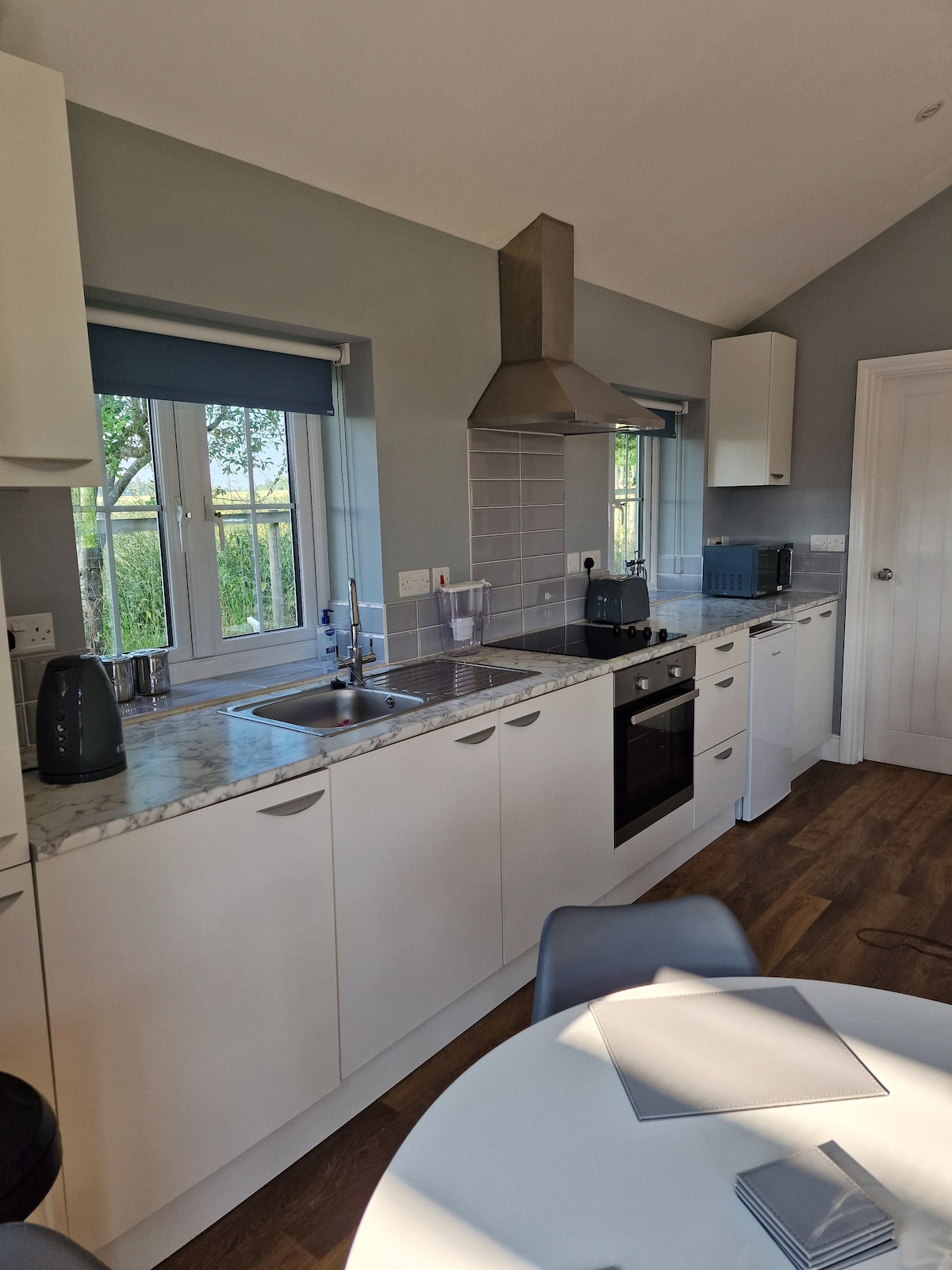 Створена для розкішного перебування, TheCabin обладнана ліжком розміру King size та розкішною ванною кімнатою. На кухні є чайник, тостер, кавоварка, мікрохвильова піч, міні-фритюрниця, холодильник, індукційна плита, каструлі та сковорідки. На сніданок у вас є яйця, свіже молоко, хліб і різноманітні каші, варення та спреди. З красивими кріслами та столом для бістро, де можна поїсти, попрацювати або просто відпочити, щоб насолодитися смарт-телевізором із Netflix, BBC iPlayer тощо. На вулиці також є невеликий приватний сад.
