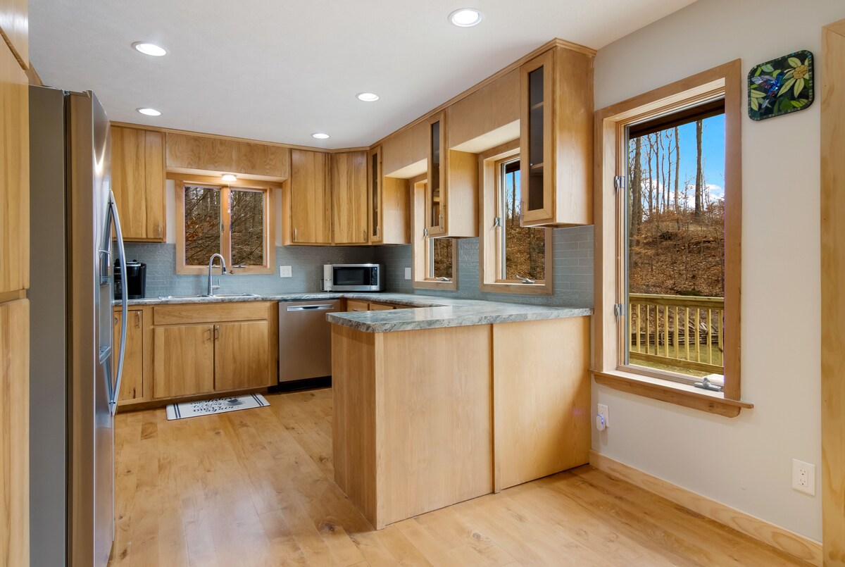Ласкаво просимо до Blue Kettle Cottage. Оновлений будинок на 4 акрах приватної землі, що прилягає до 480 акрів землі Sleeping Bear Dunes National Lakeshore. Поруч із Глен-Арбор та Імперією. Дві великі спальні, одна ванна кімната, душ на відкритому повітрі, красиве патіо з диваном, столом та місцем для багаття. Стежка чайників - це ваш задній двір і доступний цілий рік для піших походів, катання на снігоступах і бігових лижах. Якщо ви берете із собою собаку, ознайомтеся з правилами та цінами щодо домашніх тварин перед бронюванням.