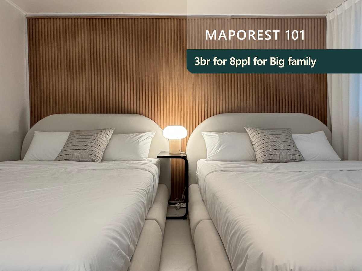 Riverview/여의도 한강뷰/홍대입구역5분/합정역5분/침대3개•방2개/홍대쇼핑거리1분