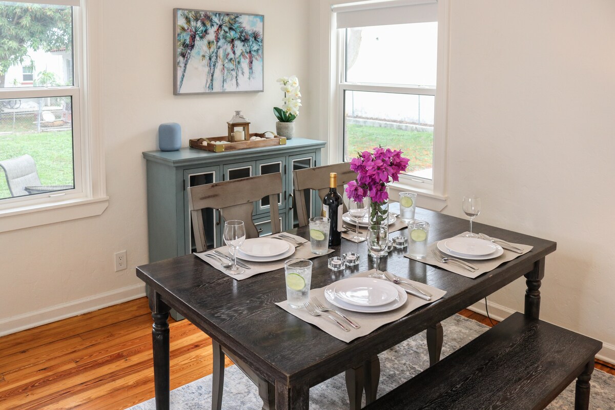 Відремонтований будинок, розташований в історичному районі Ель-Сід у Вест-Палм-Біч. Ідеально підходить для сімей, друзів і бізнес-мандрівників, оскільки його зручне розташування знаходиться менш ніж в 2 милях від більшості цікавих місць у WPB і в половині кварталу від пішохідної доріжки вздовж внутрішнього узбережжя. Пляж знаходиться за 2 милі. Розташоване в межах недорогого трансферу WPB, Circuit, ridecircuit. com/palmbeach.