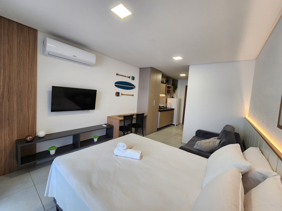 Porto Stúdio Home - це помешкання, розроблене для того, щоб ви могли насолоджуватися найкращим у центрі Порту-де-Галіньяс/PE. Ми знаходимося на площі Трес в 150 м від Віла-де-Порто та в 250 м від природних басейнів. Ви будете за кілька кроків від усього, що може запропонувати центр Порту. Слідкуйте за нашим Instagram @portohome_rentals У нас є сучасне та затишне оформлення; кожна деталь продумана для вашого найкращого перебування. У нас є спальня, вітальня.