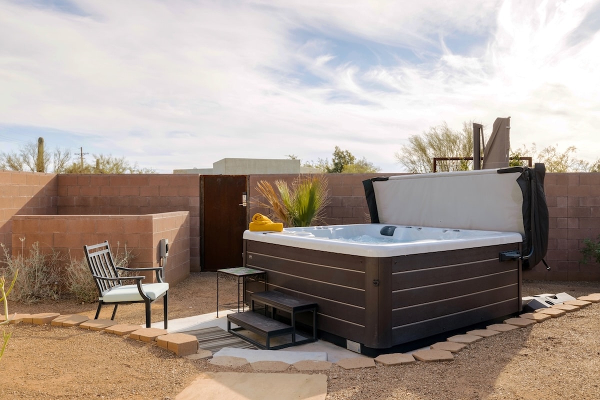 Unwind in desert tranquility at this beautifully crafted modern guest retreat! - Take in mountain views and sunsets from your private yard with a hot tub. - Enjoy easy access to nearby trails, parks, and Tucson’s vibrant local culture. - Thoughtful amenities include a well-stocked kitchen and luxe bedding. Reserve your stay at Oasis Casita and enjoy a memorable desert escape!
