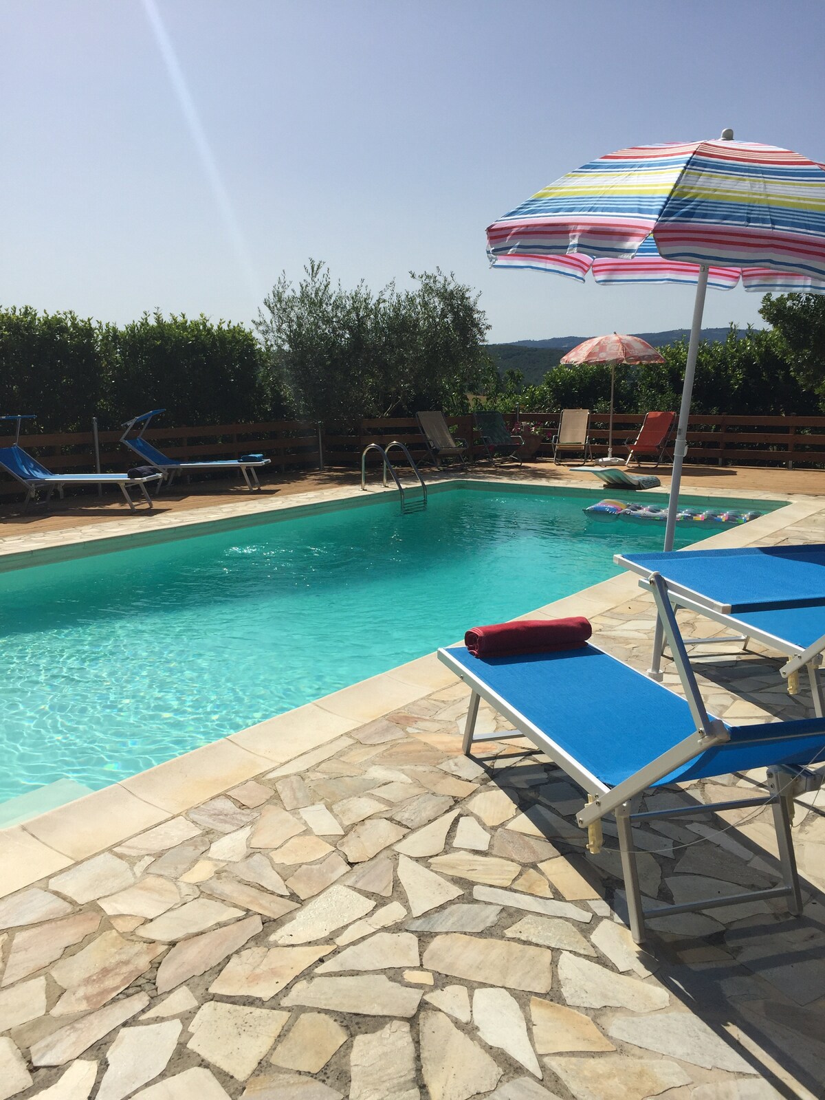 Чудовий котедж із садом та басейном для ексклюзивного використання гостями в тихому зеленому оточенні, за 10 хвилин їзди від Конеро-Рів’єра. Ви можете розслабитися та охолодитися в невеликому відкритому басейні (5 метрів завдовжки, 3 метри завширшки, 1,20 метра заввишки), який працює з початку травня до початку жовтня. Сад з парасолькою, шезлонгами та барбекю. 3 спальні, 2 ванні кімнати, мансарда з тренажерним залом та ігровим/читальним куточком. Тераса площею 16 кв. м з гойдалкою з видом на гори Сібілліні. Приватний паркінг