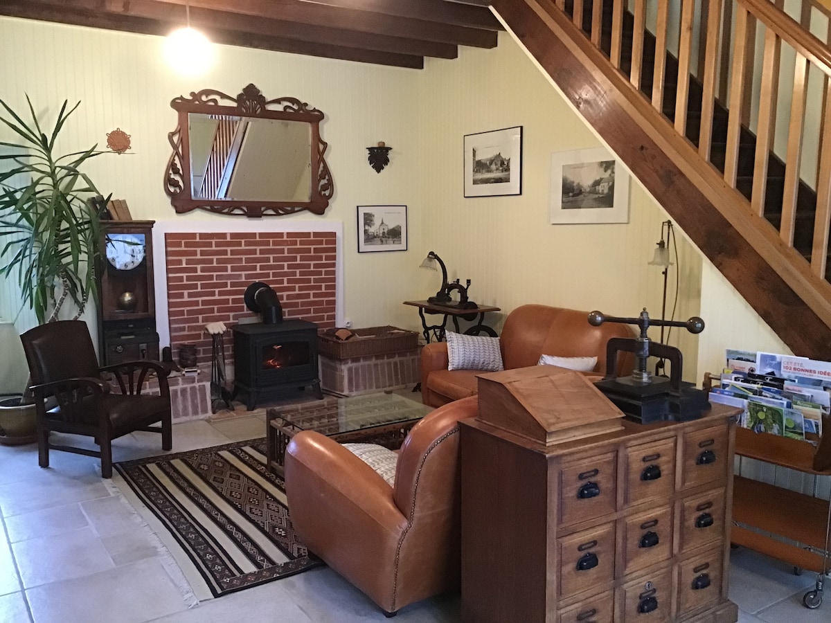 Відпочиньте в цьому прекрасному сараї, перетвореному на лофт. Унікальне тихе помешкання, за 2 кроки від шосе та Монлюсона. На першому поверсі: - 1 вітальня площею 45 кв. м - 1 обладнана кухня (+ мікрохвильова піч, кавоварка Senseo) - 1 ванна кімната Нагорі: - 1 велика відкрита спальня 28 м² з 2 ліжками - 1 невелика затишна спальня під дахом з 1 ліжком Немає телевізора Варіанти сніданку (за 5 євро з людини) Безпечна парковка, закрита територія. Більше інформації про lagrangedemarie