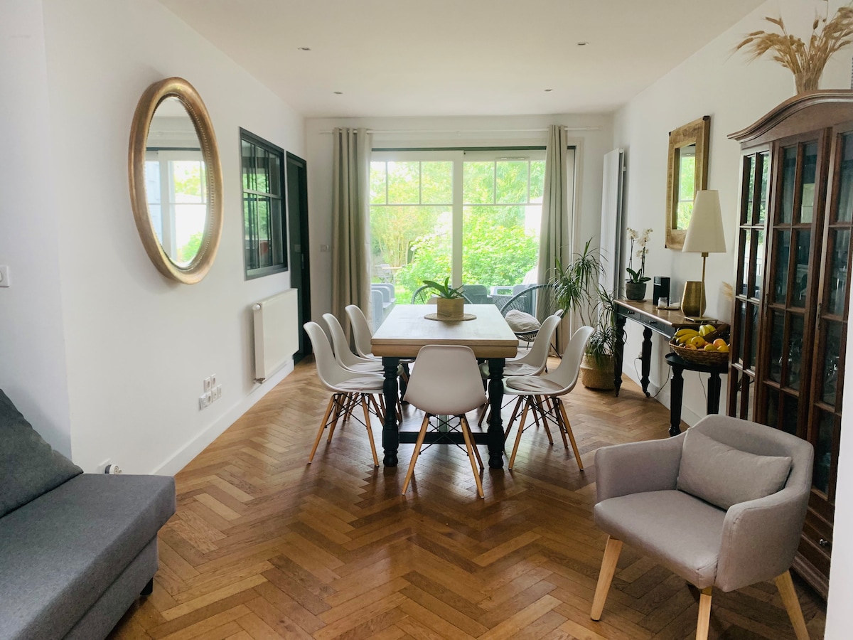 Вітаю! Я час від часу здаю квартиру в оренду. Підлога. Повний доступ до центру: 15 хв. пішки Метро: Grand Palais або Beaux-Arts (10 хв. пішки) 48 кв. м Культурний район Поруч із парком Жан-Батист-Лебас (дитячі ігри, виставкові майданчики, концерти, ресторани, бари ). Декор з підігрівом у цьому районі. 1 двоспальне ліжко в кімнаті на першому поверсі 1 двоспальне ліжко на напівзакритому мезоніні. 1 комфортне ліжко на дивані Надається постільна білизна Душ Nespresso