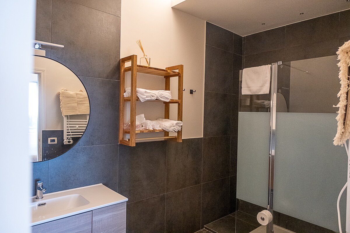Мансардна кімната, простора та тиха з окремою ванною кімнатою. Він не є незалежним, до нього можна дістатися з заднього входу в мій будинок. У ньому є двоспальне ліжко, спальня з двоспальним ліжком, кондиціонер, стіл, стіл, холодильник, мікрохвильова піч, чайник. Вона не має кухні та балкона. Я надаю: простирадла, рушники, шампунь та засоби для сніданку. Кухня недоступна. По прибутті потрібно внести внесок на прибирання від 10,00 до 30,00 євро залежно від тривалості перебування.