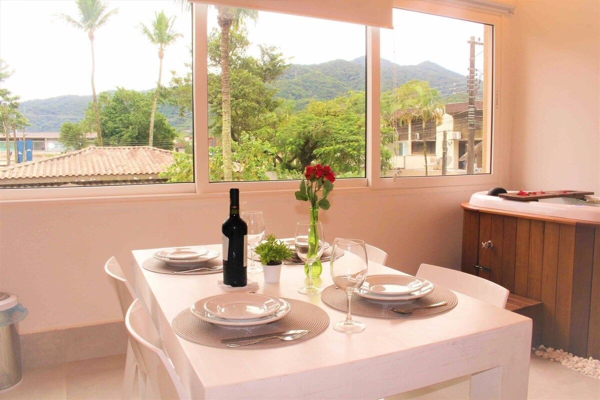 Нова квартира високого стандарту, оформлена та затишна, з привілейованим розташуванням у центрі Juquehy на вулиці Shopping Monjolo, де можна все зробити пішки. Закрита громада. Три приміщення, велика вітальня з кухнею для гурманів, дві спальні, один люкс, 2 туалети, кондиціонер у всіх приміщеннях, Wi-Fi, Smart TV, пивоварня, барбекю, фрієр, пральня, посудомийна машина... Два двоспальні ліжка, два односпальні ліжка (двоповерхові). Постільна білизна не включена.