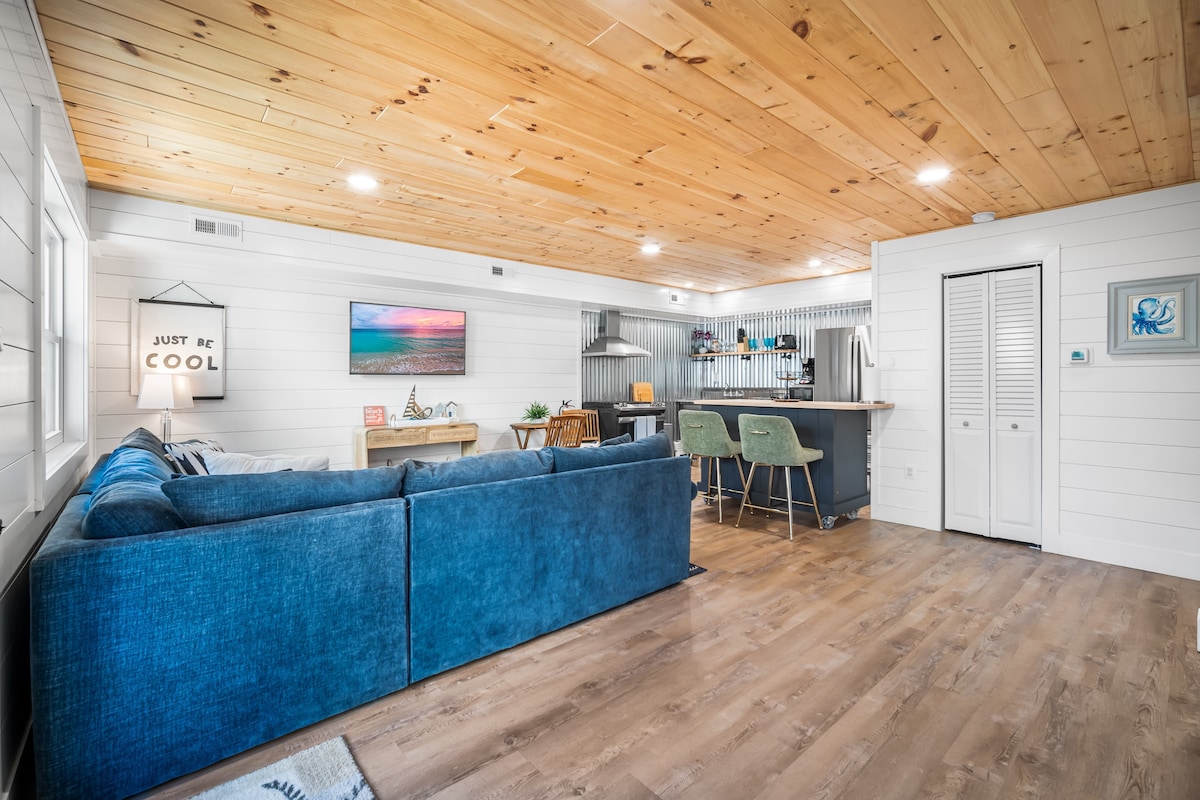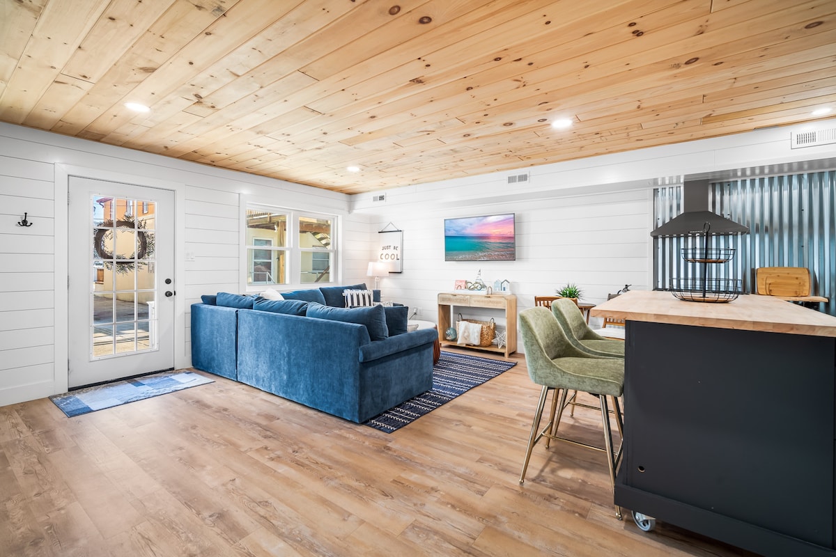 Це затишне, але стильне помешкання площею близько 189 кв. футів ідеально підходить для впорядкованого життя лише в одному кварталі від пляжу. Міні-кухня оснащена вишуканою гранітною стільницею, міні-холодильником, мікрохвильовою піччю, індукційною плитою та обіднім набором. У ванній кімнаті є душова кабіна на замовлення в заспокійливих синьо-сірих тонах. Ця квартира, мебльована з ліжком queen-size, смарт-телевізором і бюро, продумана для вашої зручності, в комплекті з пляжними рушниками для вашого задоволення.