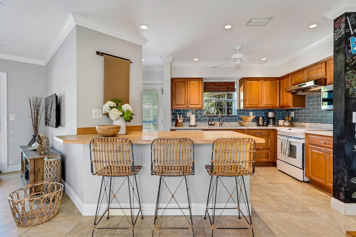 Beautifully furnished upscale home with a private, secluded backyard oasis. Enjoy the heated saltwater pool, hot tub, lush landscaping, and stylish indoor spaces with modern comforts. Fully equipped kitchen, gas grill, beach chairs, free WiFi, and cable TVs included. Perfect for relaxing, entertaining, or working remotely. Just a short walk to Wilton Drive and a quick drive to beaches and shopping.