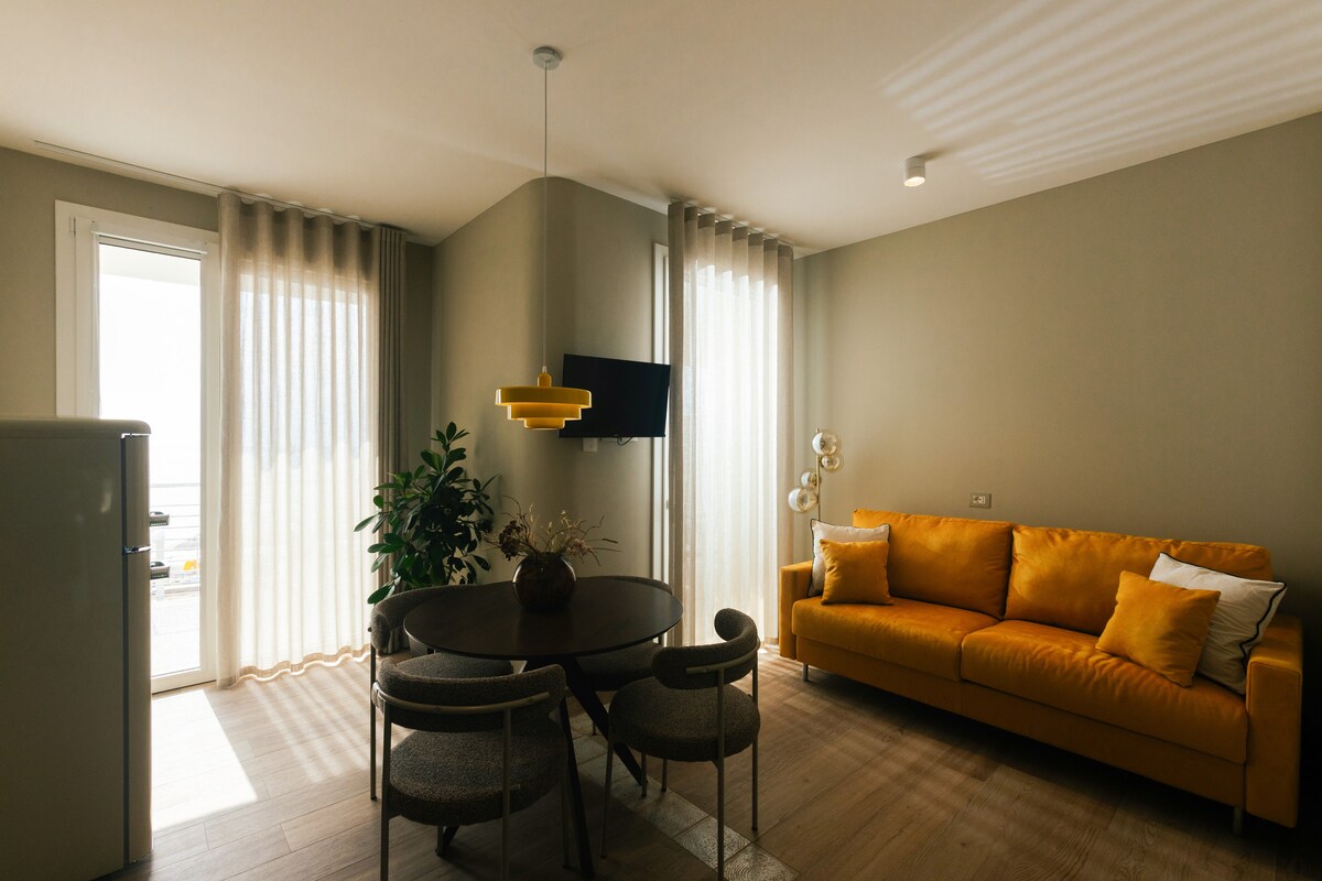 La nostra suite al piano primo caratterizzata da un esclusiva terrazza privata di 40 mq sul mare vi farà godere dall'alba al tramonto la brezza marina. Si compone di due zone, cucina soggiorno con divano letto e zona notte con bagno con possibilità di aggiungere un terzo letto. Può ospitare comodamente coppie, famiglie con massimo 2 bambini e viaggiatori singoli. Ogni alloggio include il servizio spiaggia allo stabilimento balneare Florida con ombrellone e due lettini.