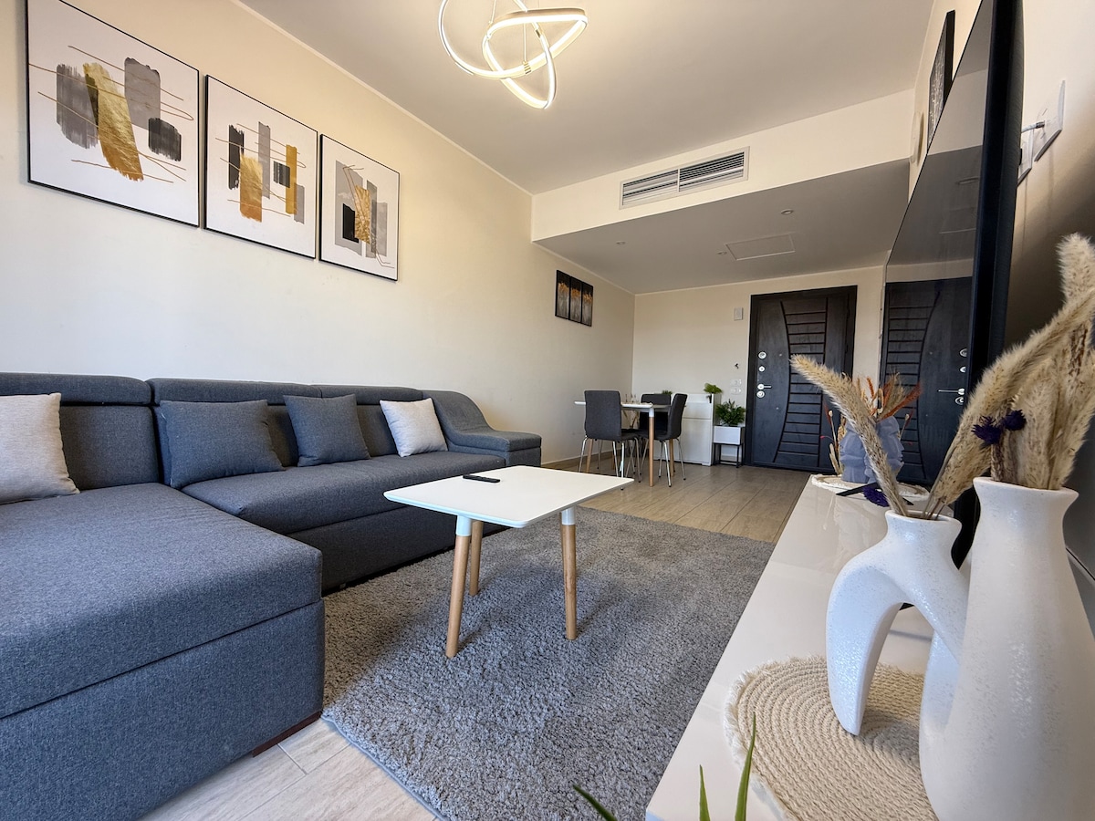 Насолоджуйтеся унікальним перебуванням у нашій стильній квартирі на першому поверсі з чудовим видом на сад і басейн. Квартира складається зі зручної спальні та просторих вітальні з відкритою кухнею, а також стильної ванної кімнати та великої тераси, що дозволяє відпочити в тихій атмосфері. Наше помешкання розташоване в тихому житловому комплексі, з легким доступом до торгового центру всього за 20 кроків від квартири, де є різноманітні ресторани та кафе. Крім того, помешкання знаходиться всього за 10 хвилин від аеропорту, що робить його ідеальним для мандрівників, які шукають комфорт.