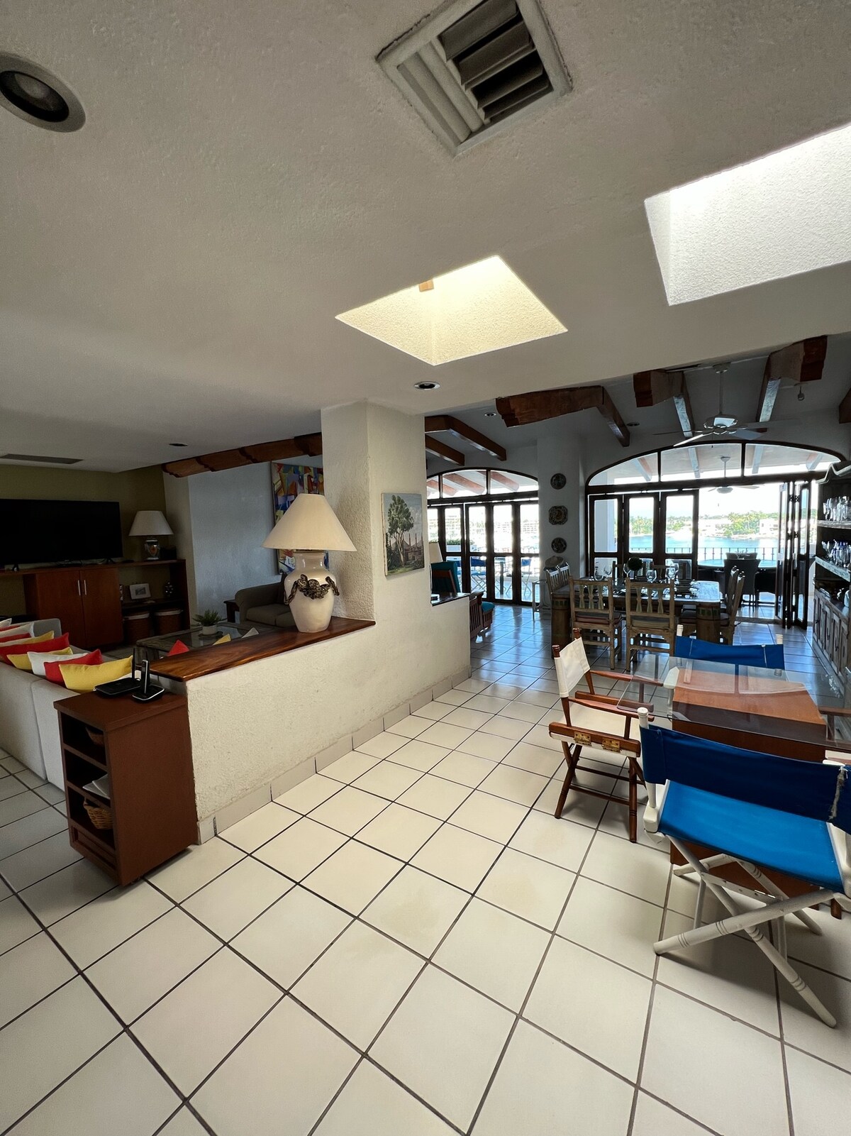 Неймовірна квартира на березі океану в пристані Нуево-Вальярта. У ньому є окрема тераса та обидві спальні з видом на океан. Вона розташована в центрі пристані в оточенні ресторанів і магазинів. Він знаходиться всього в 100 метрах від виходу на пляж. Ідеально підходить для повного відпочинку. На верхньому поверсі є дах з басейном, сауною, парною та найсучаснішим тренажерним залом. Неймовірне місце далеко від міської суєти. Ідеально підходить для відпочинку та відпочинку.