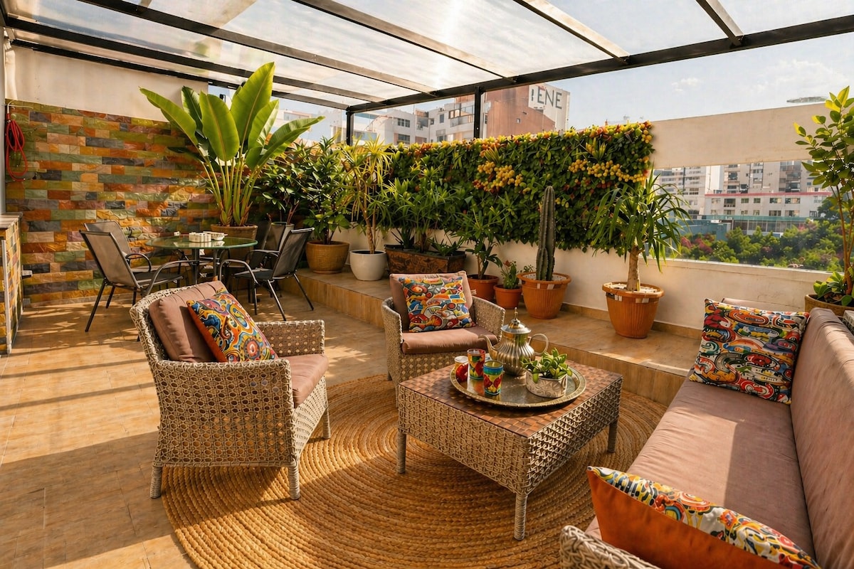 Зайдіть у розкішний 1BR 1Bath, розташований у спокійному районі поблизу знаменитого району Ain Diab triangle d'or, поруч із багатьма ресторанами, магазинами, історичними пам' ятками та сонячними пляжами. Відкрийте для себе Касабланку та всі її захоплюючі пам 'ятки, перш ніж повернутися до висококласного відпочинку зі списком багатих зручностей, який залишить вас у захваті. ✔Інтелектуальний замок без ключа ✔ Open Design Living ✔ Повністю обладнана кухня ✔ Смарт-телевізори, ✔ високошвидкісний Wi-Fi ✔ Безкоштовне паркування в гаражі Докладніше нижче