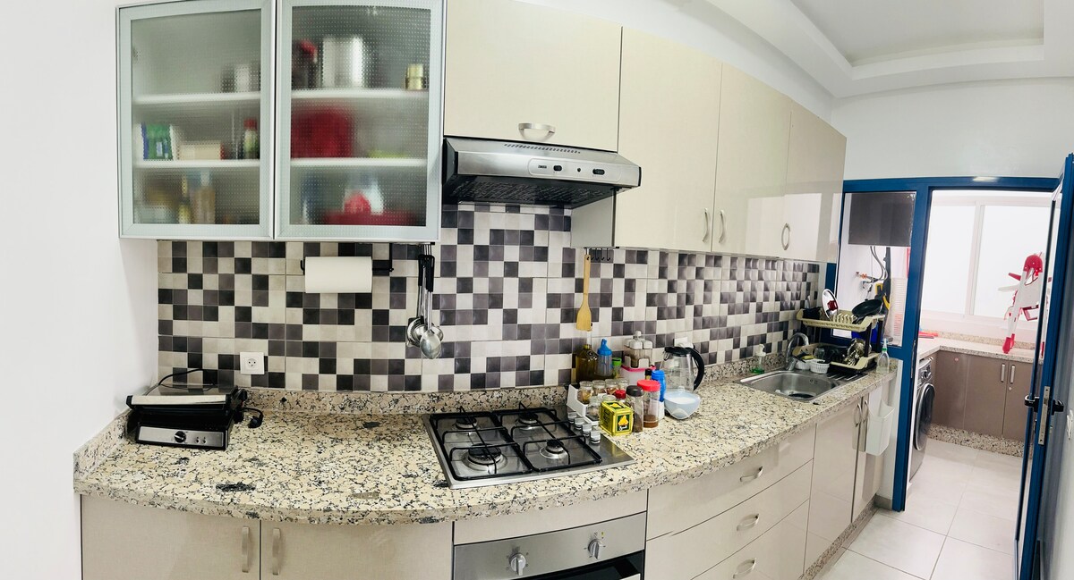 ✨Панорамна квартира в Les Jardins Bleus характеризується сучасним та елегантним дизайном, кожен елемент якого ретельно розроблений, щоб гарантувати вам безпрецедентні враження Центральне ✨розташування ✅ Квартира з панорамним видом на море та поблизу: ✅ 1 хвилина від пляжу Мартіл 🏖 і його знаменитої набережної ✅ 5 хвилин до пляжу Кабо-Негро 🏝 ✅ 4 хв від Ikea та KFC 🍗 ✅ 6 хвилин від Marjane і McDonald's 🍟 ✅ 1 хвилина до ресторанів, кафе, магазинів