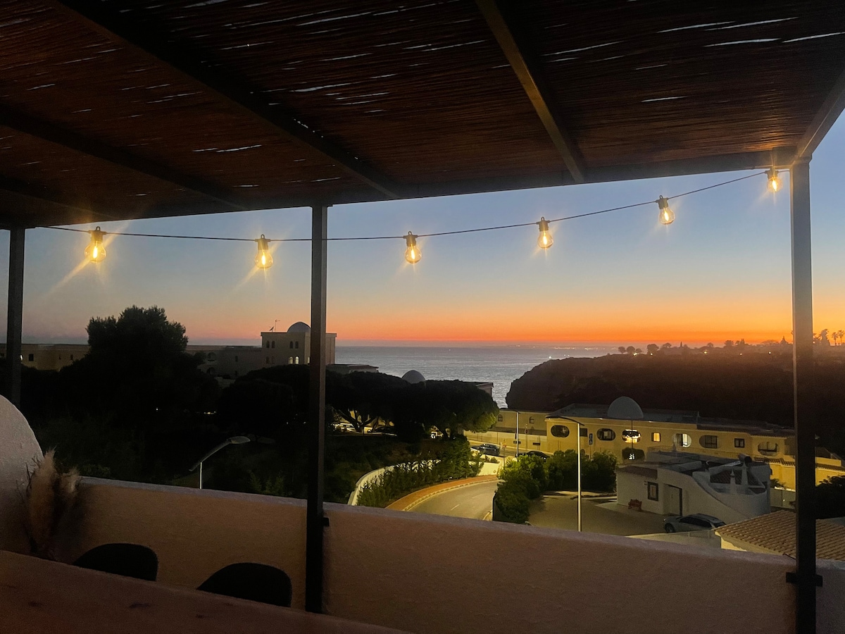 House with stunning sea views in a quiet, safe area. Amazing roof terrace and private garden in this two bedrooms with en-suite bathrooms (one with balcony and fabulous sea views). Living room, kitchen, WC, WiFi. (New kitchen, windows and bathrooms). Large condominium pool & child-friendly pool. Several restaurants nearby. Short walk to the beautiful beaches and the charming town Armação de Pêra with shops, cafés and restaurants. Enjoy the beach and scenic cliff trails on your perfect vacation!