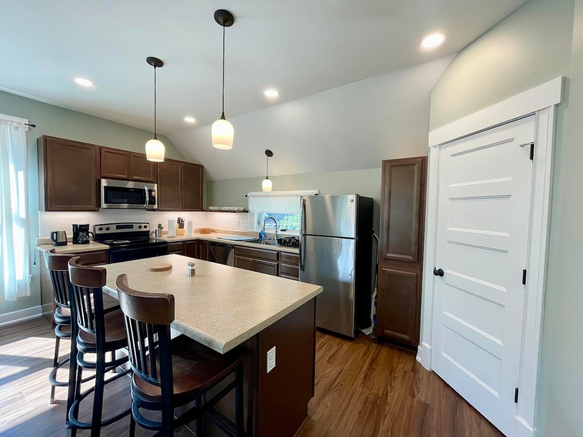 Welcome to The King’s Carriage House! 👑🐕 Enjoy an elegant, spacious retreat in historic Fountain Square—Indy's funkiest downtown neighborhood! Downtown attractions such as Lucas Oil Stadium, the Indiana Convention Center & Gainbridge Fieldhouse are ≤ 3 miles (10 mins) away! KING bed, full kitchen, spacious living room, in-unit W/D, private patio gated entrance w/ café seating AND a 1-car garage w/ free EV charging! Walk to top dining, art, music & shops. Comfort, style & location all in one!