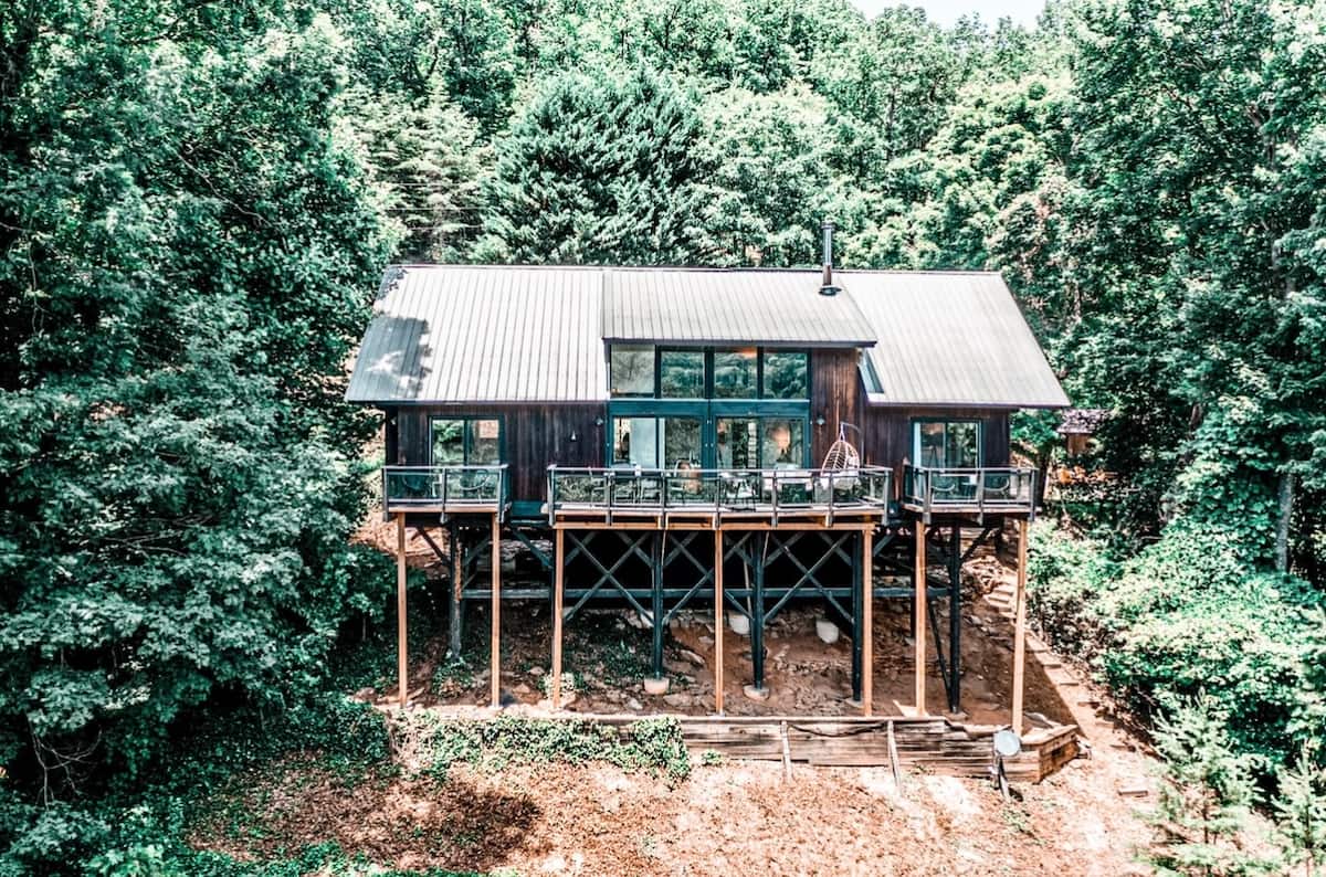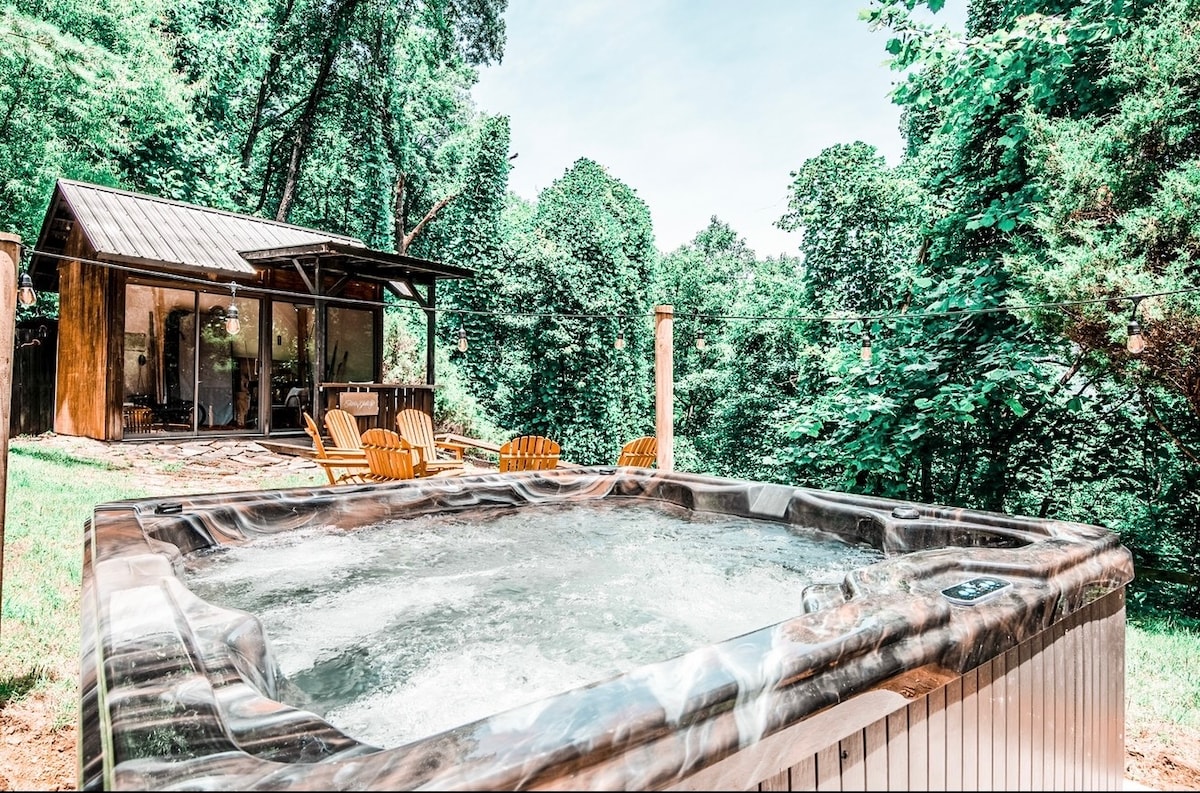***2020 #1 Найпопулярніша оселя на Airbnb у Північній Кароліні** * Пройдіться короткою прогулянкою добре освітленою стежкою до оазису в лісі. Качальний міст вітає вас у тихому, затишному будинку на деревах, оточеному рідною лаврою та безліччю листяних порід. Слухайте птахів під час прийому ранкової кави на терасі або відпочиньте в гідромасажній ванні нижче. Будинок розташований на 14 акрах. Старий форт знаходиться в 10 хвилинах до Чорної гори і в 20 хвилинах до Ешвілля.