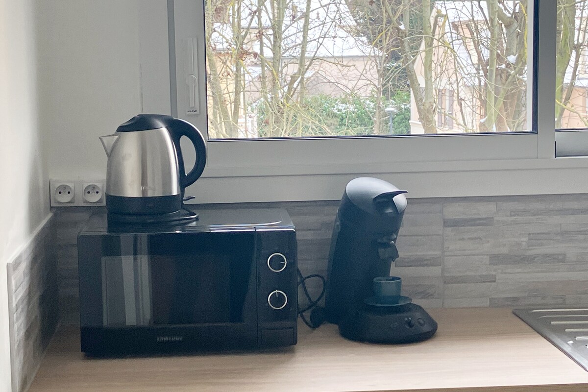 Насолоджуйтеся відремонтованою стильною та центральною студією. Розташований в 25 хвилинах ходьби від Парижа, в 5 хвилинах ходьби від RER A і в центрі Сен-Жермен-ан-Лей. Дуже добре обладнаний, він призначений для вашого короткострокового та середнього перебування: - Вітальня: диван-ліжко з матрацом 160 см, призначений для щоденного ліжка. - Великий бар площею 1x2 м2 для їжі або роботи. - Великий телевізор з 130 каналами. - Обладнана кухня: кофемашина Nespresso, посудомийна машина та постільна білизна. - Ванна кімната з рушниками та засобами (гель, шампунь);