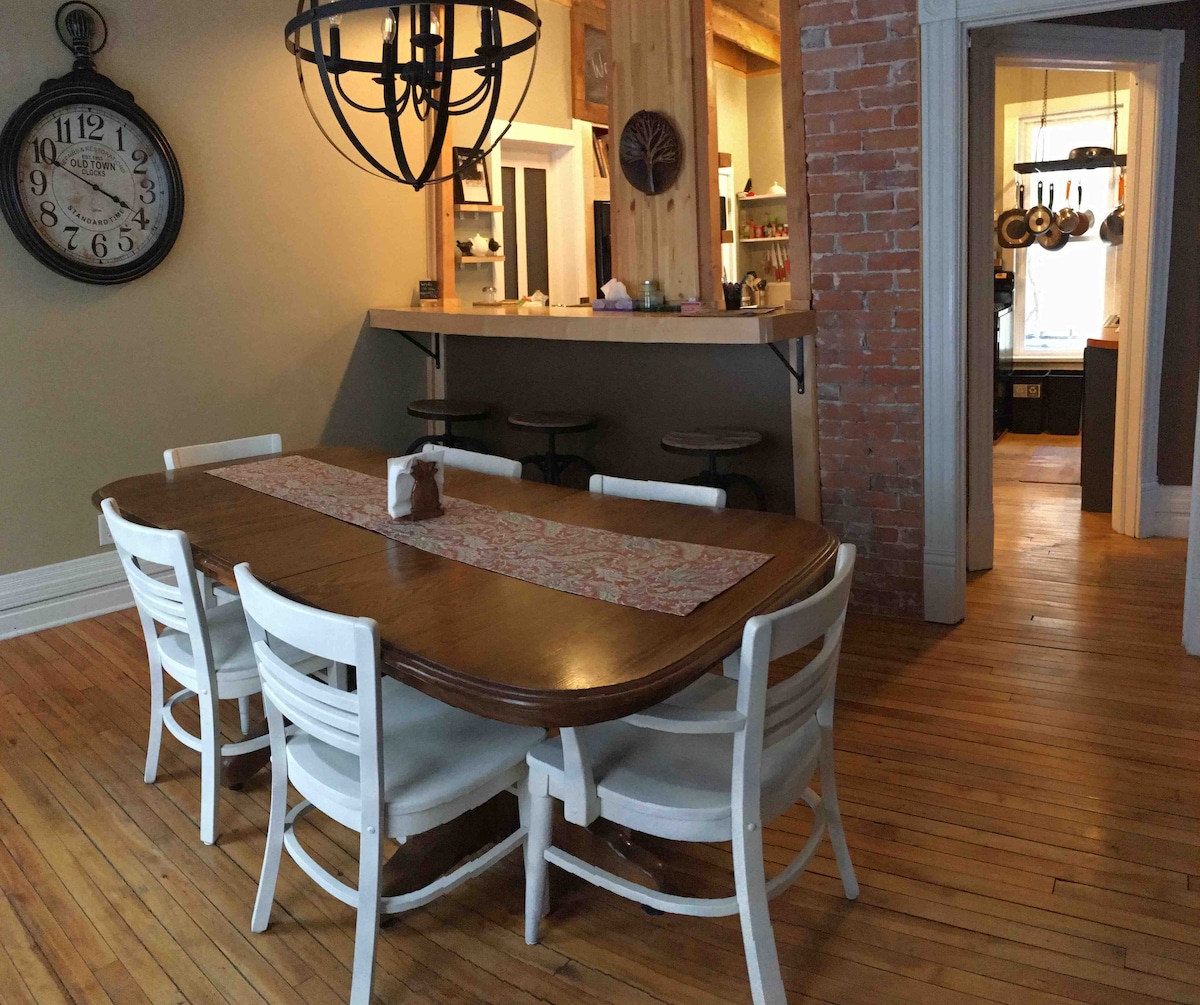 Гостюйте в центрі Маркетт в цьому чудовому оновленому фермерському будинку наприкінці 1800-х років, наповненому шармом і характером! Помешкання з трьома спальнями, 2 ванними кімнатами розташоване поруч із ресторанами, пивоварнями та кав 'ярнями Маркетт! Місцеві улюблені місця, зокрема кафе Sweet Water Cafe, Black Rocks Brewery, Down Wind Sports, Contrast Coffee і 3rd St Bagel в декількох кроках. Бездоганні пляжі озера Верхнє та велосипедні та пішохідні стежки знаходяться в декількох хвилинах ходьби або на велосипеді. Мощені патіо на задньому дворі з обіднім столом та грилем для барбекю.