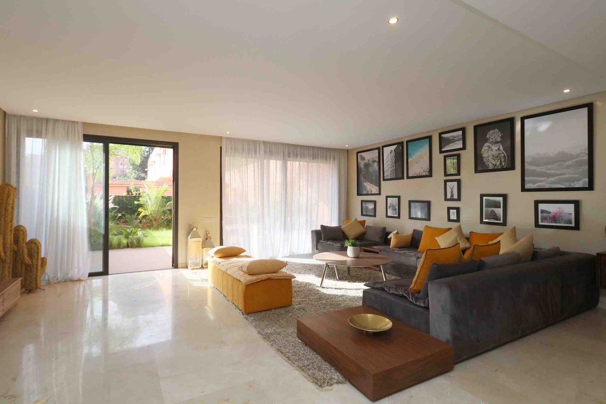 Ви коли-небудь уявляли, що вирушаєте в захоплюючу подорож яскравими вулицями Марракеша? Перестаньте мріяти і починайте жити! Ця унікальна квартира - справжня перлина, яка чекає на ваше бронювання. Розташоване в межах досяжності від усіх чудових місць і зручностей, ваше перебування обіцяє бути чарівним враженням. ✔ Безкоштовна кава та чай <3 ✔ Wi-Fi без швидкості Ліжко розміру «✔king-size» ✔ Безкоштовна пральна машина Постільна білизна✔ найвищої якості «Бекендорфф» ✔ Приватний критий басейн ✔ Великий смарт-телевізор