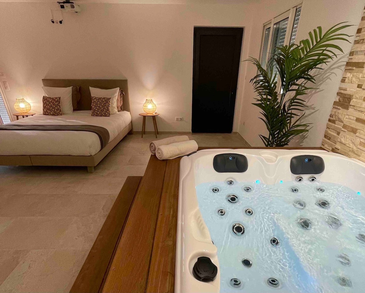 Насолоджуйтеся романтичною головою, щоб вирушити в любовну кімнату на ніч або провести кілька днів відпустки. Вілла Espérance пропонує вам романтичну студію «Honey Moon» у спокійному і тихому місці за 800 м від моря. Незабутні враження від любові: - Богемна шикарна атмосфера - Приватна гідромасажна ванна - Дзен-простір - Висококласний верхній проектор (домашній кінотеатр) - Ліжко з балдахином У цьому помешканні не можна перебувати з домашніми тваринами