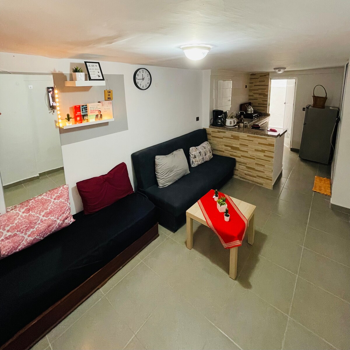 Ласкаво просимо до нашої затишної квартири в Мартілі, всього в 5 хвилинах від пляжу! У вітальні та спальні є кондиціонери, а також басейни, що працюють цілий рік, ігровий майданчик та цілодобова охорона. Поруч розташовані кафе, ресторани та супермаркет. Ми надаємо пріоритет чистоті, щоб забезпечити комфортне перебування для сімей і пар. Ідеально підходить для спокійного відпочинку з близькими, і легко доступний для відвідування сусідніх визначних місць, таких як Тетуан, Танжер і Шефшауен.