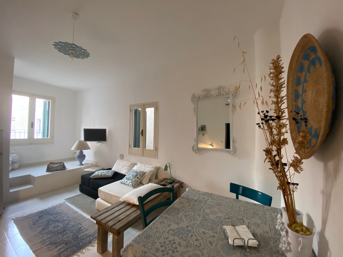 Історичне і чарівне проживання. Окремий будинок у частині міста XVIII століття, всього в декількох кроках від головної площі. Велика тераса з видом на море. Легка парковка. Легкий доступ до дороги, що веде до моря. Підходить для тих, хто шукає гарне життя, смакуючи кольори та смаки Апулії. Індивідуальний, історичний та чарівний будинок, розташований у 17-й частині міста, безпосередньо біля центру. Велика тераса з видом на море. Легка парковка і шлях до моря. Для справжніх любителів Апулії!
