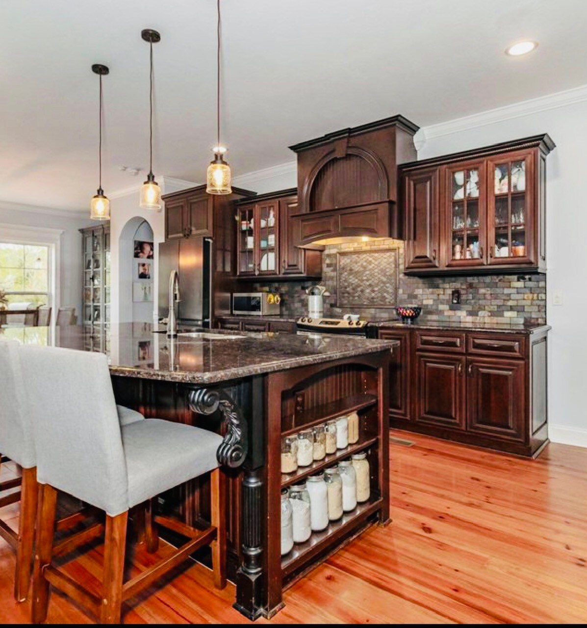 Помешкання прикрашене красивими арками, високими стелями, важкими млинами та багато іншого. Простора кухня з величезним островом та залом для сніданку відкрита для великої сімейної кімнати з кам 'яним каміном та газовими колодами. На головному рівні ви знайдете головну ванну кімнату, офіс, їдальню, брудну кімнату та пральню. На верхньому поверсі є 3 спальні та 2 повні ванні кімнати. Екран на веранді має бразильську вишневу підлогу і виходить на велику терасу з видом на 4,27 акра на озері Сансет. Гарний будинок!