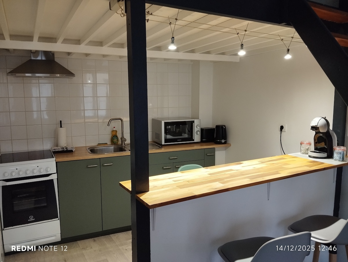 Студія площею 25 м2 на першому поверсі, в 10 хвилинах ходьби від центру міста та за 3 хвилини від берегів Сени. Це спокусить вас мезоніном. Він розташований за 17 хвилин від виставкового центру Rouen, в 25 хвилинах від Kindarena, в 16 хвилинах від Біотропіки. У кінці вулиці Place du Champ de Foire автобусна лінія F9 доставить вас до Руана. Безкоштовне паркування на вулиці на вулиці (не завжди), паркування в кінці вулиці, безкоштовне паркування.