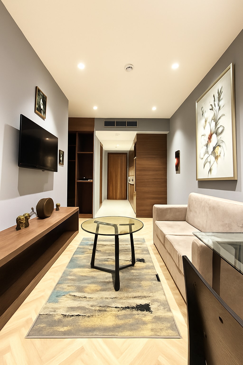 Ласкаво просимо до вашого ідеального відпочинку в центрі Гургаона! Ця сучасна, красиво оформлена квартира-студія поєднує в собі стиль, комфорт і зручність — ідеально підходить як для коротких, так і для тривалих перебувань. Студія оснащена всіма сучасними зручностями — швидкісним Wi-Fi, смарт-телевізором, кондиціонером, повністю обладнаною міні-кухнею та зручним ліжком розміру queen-size. Незалежно від того, чи ви тут для роботи, чи для відпочинку, ви знайдете все необхідне для безпроблемного перебування.