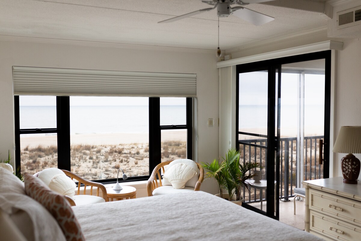 Нещодавно відремонтований кондомініум на березі океану принесе вам спокій і спокій, коли ви слухаєте хвилі, що падають на пляж. Розташована на 4-му поверсі в Північному Оушен-Сіті, ви перебуваєте над лінією дюн, що забезпечує вам приватний оазис з видом на горизонт. Зауважте, що гостям, які бронюють це помешкання, має бути не менше 25 років