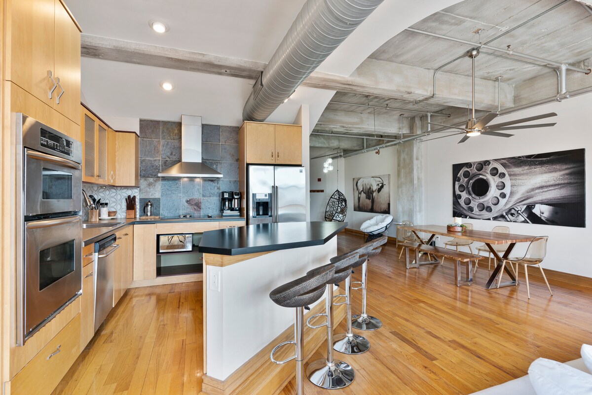 Вам і вашій групі сподобається цей приголомшливий і просторий лофт на 4-му поверсі, розташований прямо на популярній Вашингтон-авеню в Сент-Луїсі! Ви будете в чудовому місці і зможете прогулятися до багатьох ресторанів, кафе, магазинів, барів і навіть таких пам 'яток, як Міський музей та Юніон-Стейшн! Затишний диван на плюшевому дивані, увімкніть газовий камін і насолоджуйтеся чудовим видом на захід сонця прямо з вітальні! З спа-ванною, розкішною постільною білизною/рушниками/банними халатами та меблями...ви не захочете виїжджати!