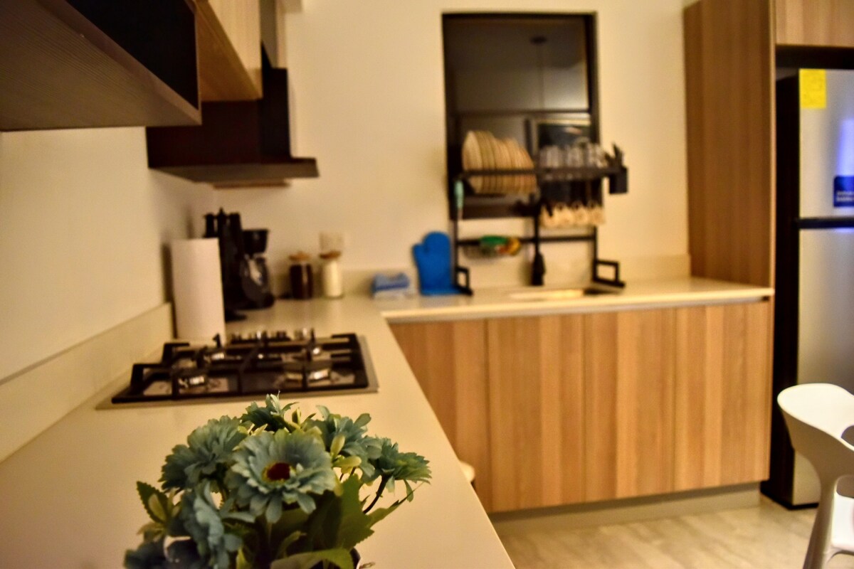 Насолоджуйтесь стильним враженням у цьому центральному місці! Цей нещодавно відремонтований будинок розташований в безпечній закритій житловій зоні, за сім хвилин їзди можна дістатися до торгового центру Galerias Santo Domingo, ресторанів, супермаркетів, аптек та багато іншого. Він пропонує приватне та тихе помешкання для відпочиваючих і ділових мандрівників. У номері є зручне ліжко розміру King size, 1 ліжко queen-size та 1 повнорозмірне ліжко. Телевізор і кондиціонер, гаряча вода, пральна та сушильна машини, робоче місце та чудова кухня.