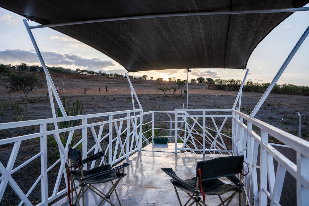 Escape to our hilltop farm oasis! Enjoy our home with an orchard and friendly animals, surrounded by breathtaking views of Lukenya & Ngong hills. Pick fresh fruit from the seasonal orchard or interact with the goats, chickens, & geese. Our spacious outdoor creates a warm atmosphere for relaxing with family and provide a peaceful retreat after exploring nearby hiking trails, & seasonal streams. Book now for an unforgettable nature-filled getaway!