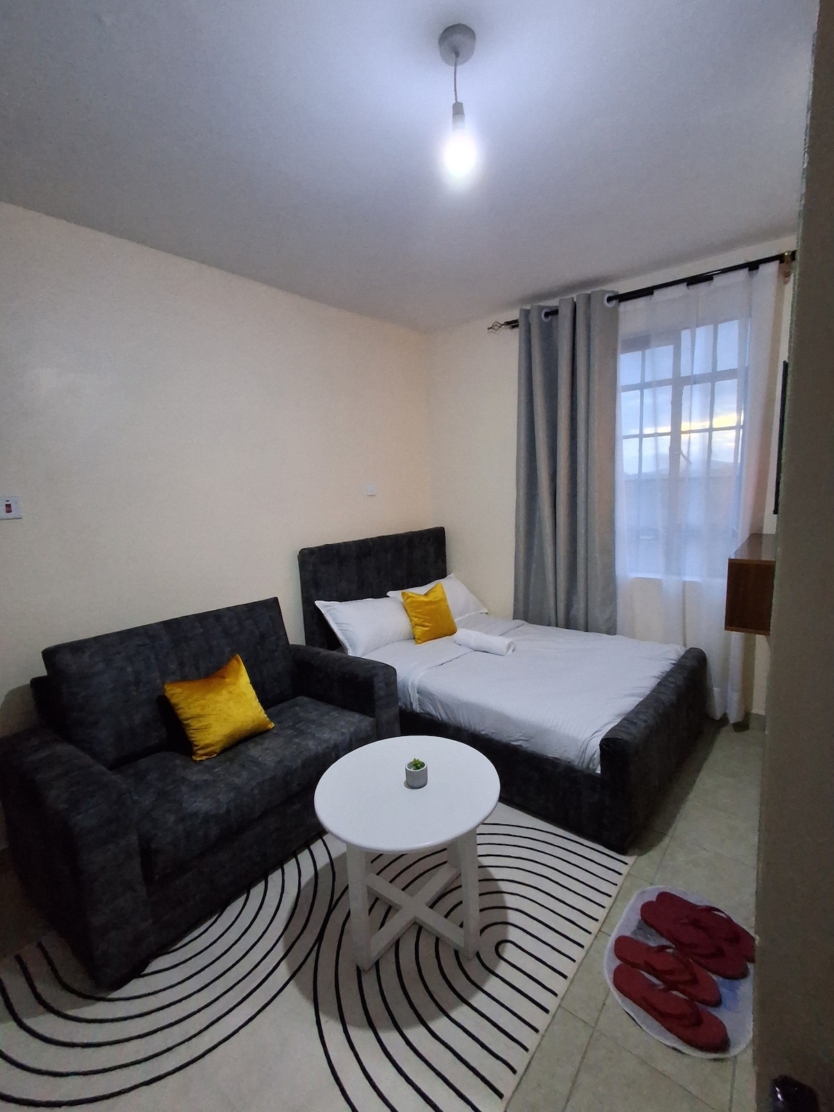 Elegant and super clean. Keep it simple at this peaceful and centrally-located place within Machakos town. You would easily find conference facilities,supermarket, eateries,hospital, pharmacy. Above all this you are guaranteed exciting and convenience to other amenities you may need including swimming pool and gym in the nearby hotel. parking is allowed inside the building only during night time