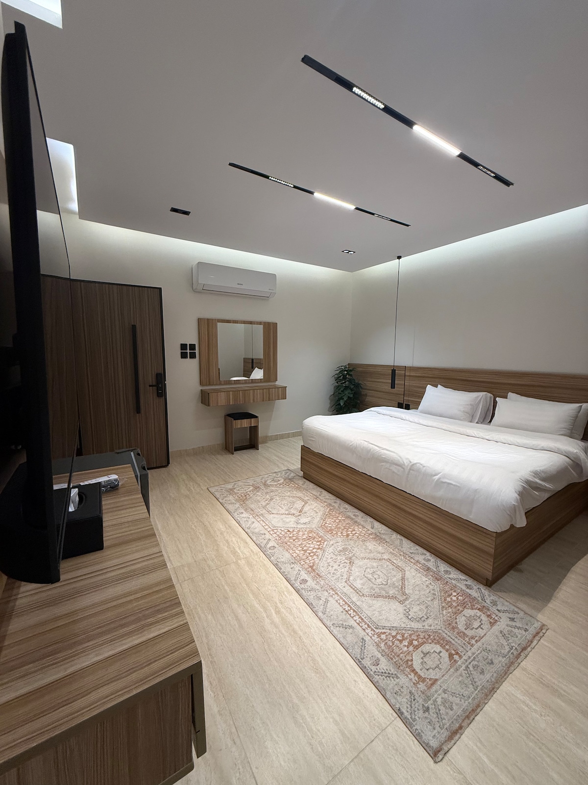 غرفة فاخرة بسرير ماستر مريح، جلسة أنيقة، شاشة ذكية، دورة مياه خاصة وركن قهوة. قريب من الحرم المكي وفي منطقة هادئة وآمنة بجوار جامع الراجحي، مع سهولة الوصول للمولات والمطاعم والممشى. مثالي للراحة والسكينة لقضاء أجمل الأوقات. Luxury room with master bed, stylish seating, smart TV, private bathroom, and coffee corner. Near Al-Haram in a quiet, safe area next to Al-Rajhi Mosque, with access to malls, restaurants, and walking areas. Perfect for comfort, relaxation, and unforgettable stays.