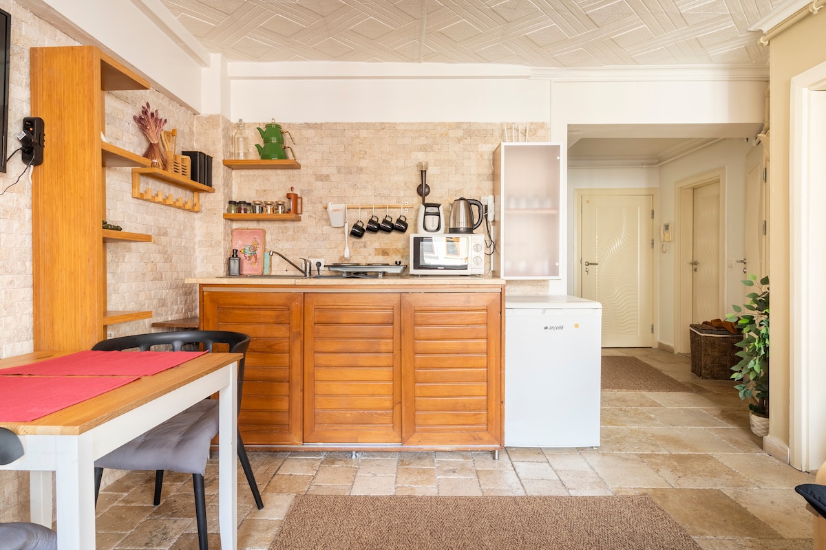 Відкрийте для себе 120-річну квартиру в західному стилі Стамбула в найпопулярнішому місці Стамбула. З стелями висотою 310 см і площею 100 кв. м квартира може вмістити до 5 осіб. Квартира складається з спальні з двома односпальними ліжками, спальні з двоспальною ліжком, просторої вітальні, повністю обладнаної кухні, холодильника, гардеробної, ванної кімнати з усіма зручностями, задньої бокової веранди та французького балкона. Ви зможете користуватися швидким Інтернетом (100 Мбіт/с) та міжнародними телеканалами, включаючи Netflix та відео Amazon Prime.