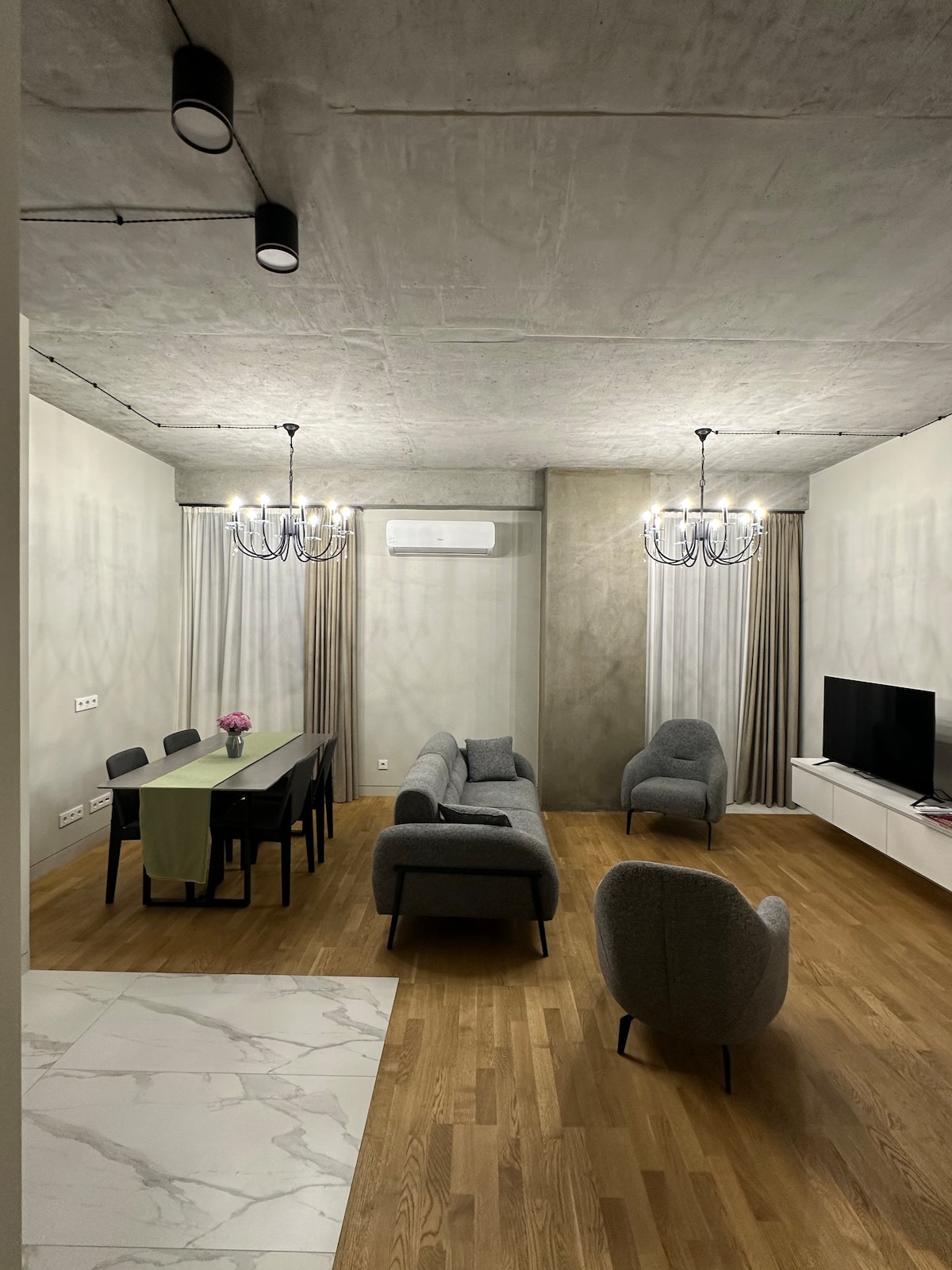 Зупиніться в нашій ексклюзивній квартирі-лофті в новій будівлі, прямо в центрі Єревану! Розташована між вулицями Теряна та Абовяна, всього за кілька кроків від церкви святої Анни. Кафе, супермаркети та пам’ятки розташовані навколо — Оперний театр, Північний проспект, Каскад, Площа Республіки, Вернісаж тощо. Незважаючи на центральне розташування, квартира спокійна та повністю обладнана для вашого ідеального перебування.