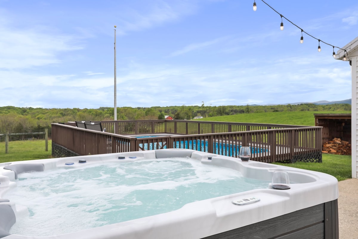 Якщо ви хочете насолодитися красою долини Шенандоа, це ідеальне місце! Зануртеся в басейн і подивіться, як сонце занурюється в гори, щоб насолодитися одними з найдивовижніших західів сонця, які ви коли-небудь побачите! Насолоджуйтеся власною гідромасажною ванною. Пообідайте на патіо під ринковим освітленням. Насолоджуйтеся пейзажами пагорбів з дивовижним видом на гори. Усередині цього оновленого фермерського будинку є все необхідне для відпочинку та оновлення. Відвідайте піші прогулянки, піші прогулянки та виноробні.