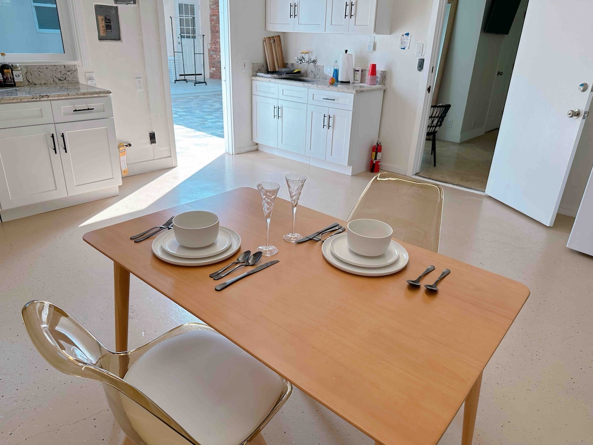 Цей відремонтований дизайнерський номер з 1 спальнею та 1 ванною кімнатою, розташований недалеко від гір Сан-Габріель, пропонує спокійний відпочинок із сучасними зручностями. Маючи ліжко king-size, приватний двір із місцями для відпочинку та пральну/сушильну машину в помешканні, він ідеально підходить для пар, дистанційних працівників або тих, хто шукає комфорту. Зручне розташування поблизу Міста надії, метро, Пасадини та DTLA. Надзвичайно чисто, приватна парковка всього в декількох кроках.