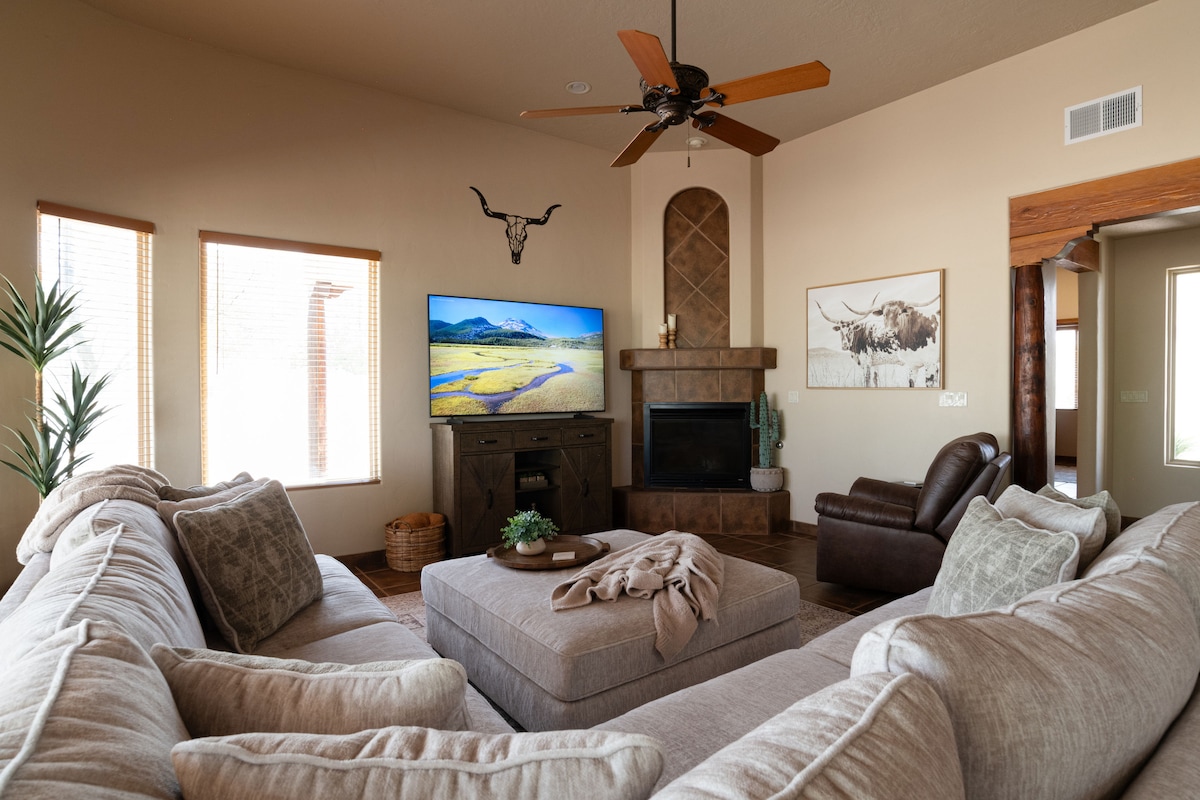 Відчуйте себе розкішшю, на яку ви, безумовно, заслуговуєте, насолоджуючись спокійною сільською, але елегантною дерев 'яною хатою в горах Сакраменто. Цей затишний відпочинок змусить вас задуматися, чому ви не побалували себе чудовою відпусткою раніше! Привабливий декор цього автентичного гірського раю просять вас зніміть взуття, насолоджуйтеся підлогою з підігрівом і почувайтеся як удома. Розслабтеся перед теплим каміном або насолодіться кіномарафоном на 47-дюймовому телевізорі з DirecTV