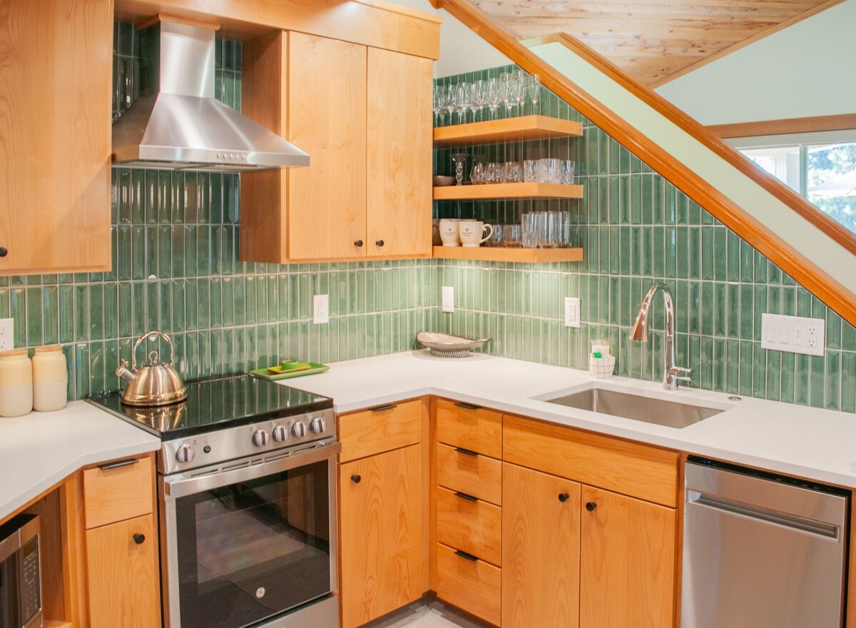 його лісова перлина, розташована на пишному, тихому прапорі на пагорбах Південного Юджина, розташована в 1 милі від продуктових магазинів, ресторанів і кав 'ярень на вокзалі Вудфілд і Amazon Parkway. Наше помешкання - це мрія пішоходів, бігунів і велосипедистів, розташована в милі від 4 популярних парків і є чудовим місцем запуску для пагорбів і велосипедних маршрутів Південно-Західних пагорбів. U of O & Hayward Field знаходиться в 2,8 милі, стадіон Autzen Stadium - в 3,6 милі, а лікарня McKenzie Riverbend - в 6,6 милі.