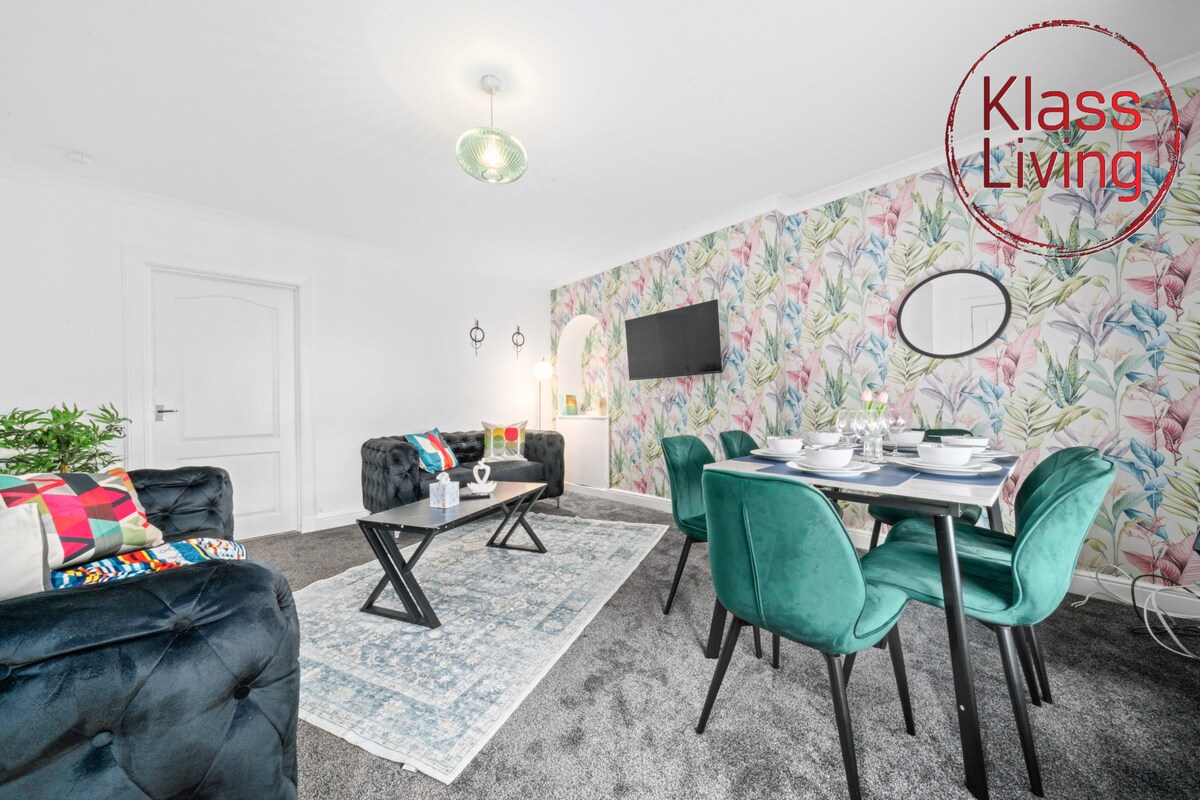 Нещодавно відремонтована квартира з 2 спальнями, ідеально підходить для сімей або індивідуальних мандрівників. Насолодіться яскравою вітальнею відкритого планування з повністю обладнаною сучасною кухнею та затишним підлоговим опаленням. Обидві двоспальні спальні пропонують зручні ліжка для спокійного відпочинку. Прямо на вулиці є безкоштовна парковка. Всього в 10 хвилинах їзди від торгового центру East Kilbride, автобусних і залізничних станцій, а в 25 хвилинах їзди від центру міста Глазго. Лікарня Hairmyres знаходиться всього за 15 хвилин.